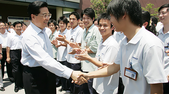 2007年7月28日,时任中共中央总书记、国家主席、中央军委主席胡锦涛视察九游电子